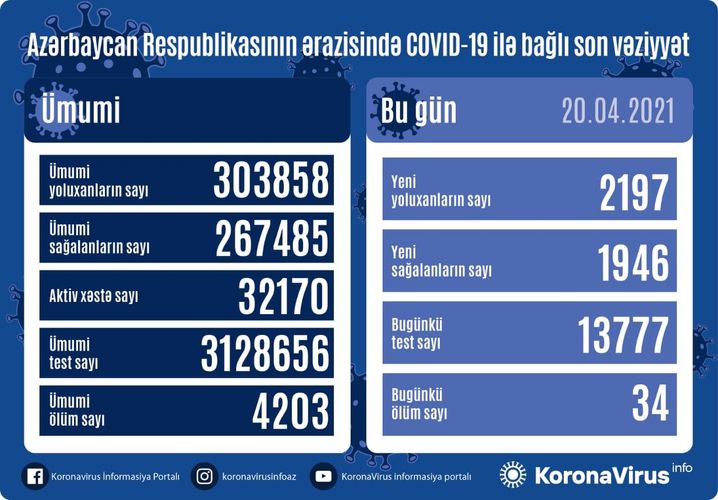 19 Aprel 2021-ci il tarixində 995 yoluxma faktı qeydə alındığı açıqlanmışdı.
