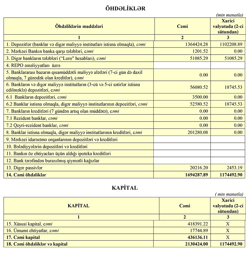 Bankın məcmu kapitalı ötən ilin müvafiq dövrü ilə müqayisədə 2,45% (10,2 milyon manat) artaraq 426 milyon 970 min manat təşkil edib.