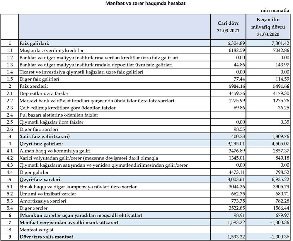 “Muğanbank” ASC 2021-ci ilin ilk rübünü 1 milyon 593 min manat xalis mənfəət ilə başa vurub. Halbuki, Bank ötən ilin eyni dövrünü 1 milyon 300 min manat xalis zərər ilə bağlamışdı.