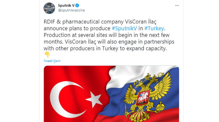 Marja xəbər verir ki, Rusiya Birbaşa Sərmayə Fondunun (RDIF) rəsmiləri, "RDIF ilə Türkiyənin əczaçılıq şirkəti "Viscoran Ilac", dünyanın koronavirusa qarşı təsdiqlənmiş ilk peyvəndi Sputnik V-nin bu ölkədə istehsalı üçün əməkdaşlıq edəcəklər", - açıqlamasını ediblər.