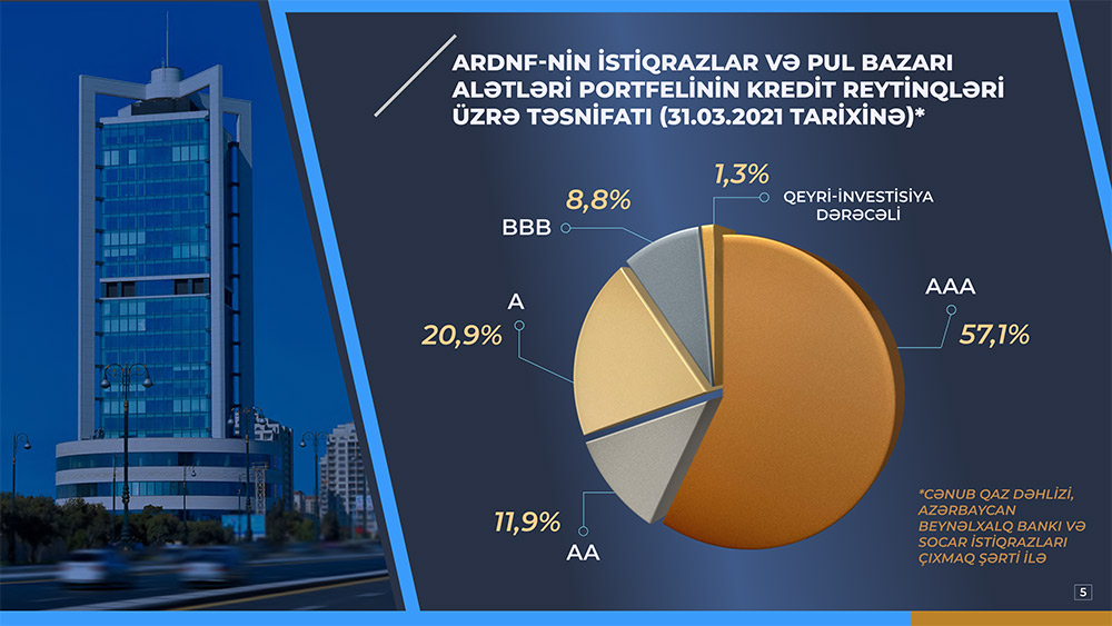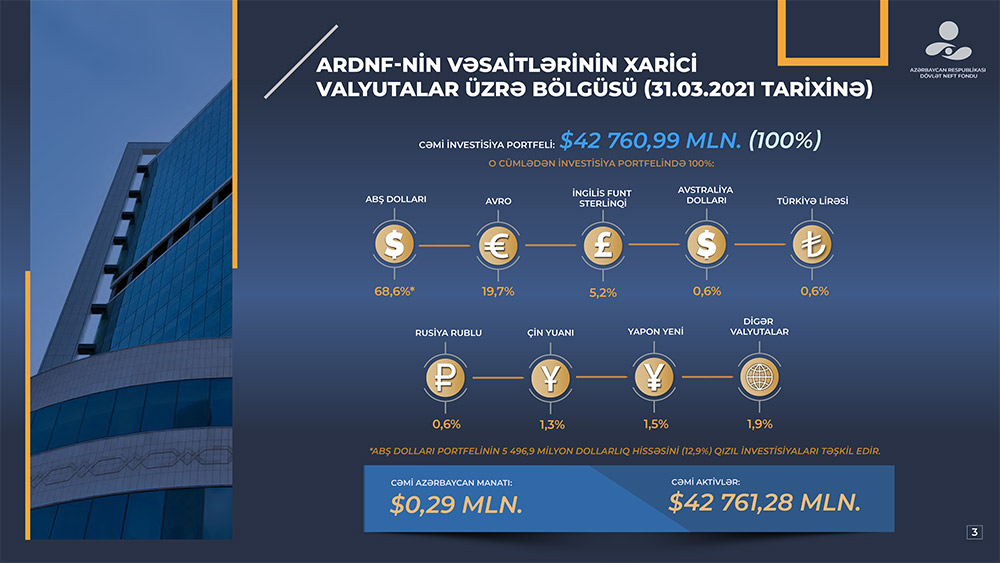 2021-ci ilin ilk rübündə Azərbaycan Respublikası Dövlət Neft Fondunun (ARDNF) investisiya portfelində qızılın miqdarı dəyişməyib.