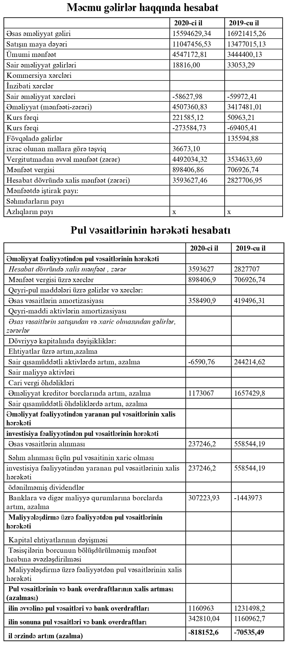 Marja şirkətin maliyyə hesabatlarına istinadən xəbər verir ki, 2019-cu ildə 16 milyon 921 min 415 manat təşkil etmiş əsas əməliyyat gəlirləri (satış) 2020-ci ildə 15 milyon 594 min 629 manata geriləyib (1 milyon 326 min 786 manat azalıb). Satışın maya dəyəri isə 13 milyon 477 min 15 manatdan 11 milyon 47 min 456 manata düşüb (2 milyon 429 min 559 manat azalıb).