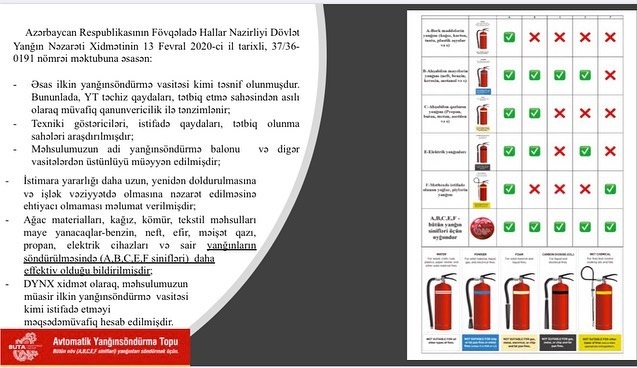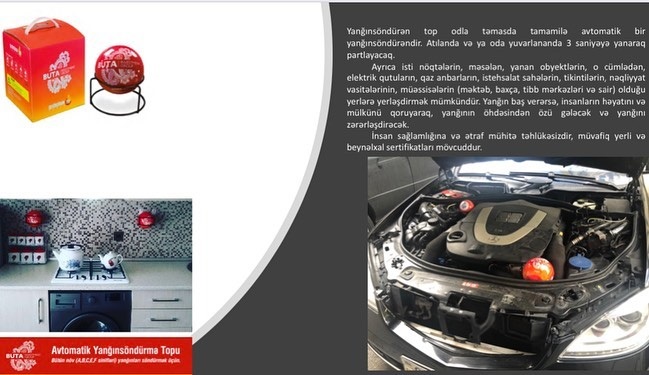 (®️) Azərbaycanın "Buta İnvestment Group" şirkəti yeni nəsil yanğinsöndürən vasitənin (yanğınsöndürmə topunun) Azərbaycanda istehsalına başlayr.