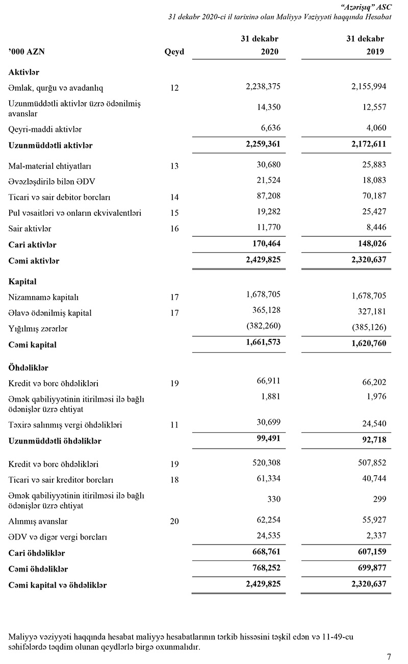 Bu il yanvarın 1-nə "Azərişığ"ın aktivləri 2 milyard 429 milyon 825 min manat olub ki, bu da illik müqayisədə 4,7% çoxdur. Hesabat dövründə səhmdar cəmiyyətinin öhdəlikləri 14,3 % artaraq 768 min manata düşüb, balans kapitalı isə 2,52% artaraq 1 milyard 661 milyon 573 min manata çatıb.