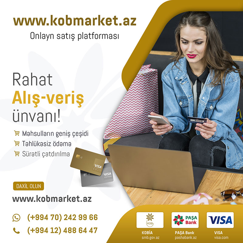 Artıq hər bir sahibkar Kobmarket.az-da qeydiyyatdan keçərək, mallarını və xidmətlərini özünün onlayn mağazası vasitəsilə satmağa başlaya bilər.Birləşmiş Millətlər Təşkilatının Ticarət və İnkişaf Konfransının son hesabatına əsasən, pandemiya dünya miqyasında internet satışların artmasına əhəmiyyətli dərəcədə təsir edərək elektron ticarətin əsl katalizatoruna çevrildi. Bu gün bir çox şirkətlər onlayn satış üçün öz platformalarını yaratmağa çalışırlar. Yeni Kobmarket.az internet platformasının təsisçiləri qarşılarına - Azərbaycanda hər bir sahibkar üçün istifadəsi mümkün ola biləcək e-ticarətin yaradılması kimi bir hədəf qoymuşdular. Artıq hər bir sahibkar Kobmarket.az-da qeydiyyatdan keçərək, mallarını və xidmətlərini özünün onlayn mağazası vasitəsilə satmağa başlaya bilər.