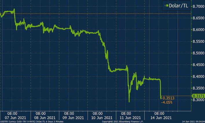 Türk lirəsi açıqlanan yeni "swap" razılaşması ilə əlaqədar olaraq Əərdoğan-Bayden görüşü əvvəlində dollara qarşı güclənir.