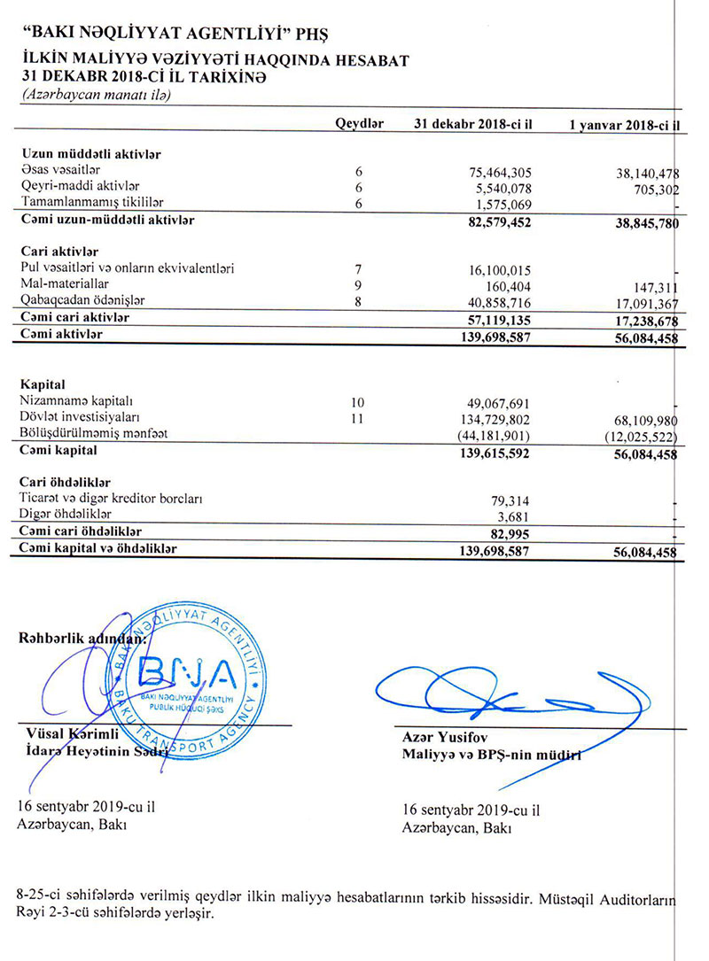 Bakı Nəqliyyat Agentliyi ilk dəfə maliyyə hesabatını açıqladı – ZƏRƏRLƏ İŞLƏYİB
