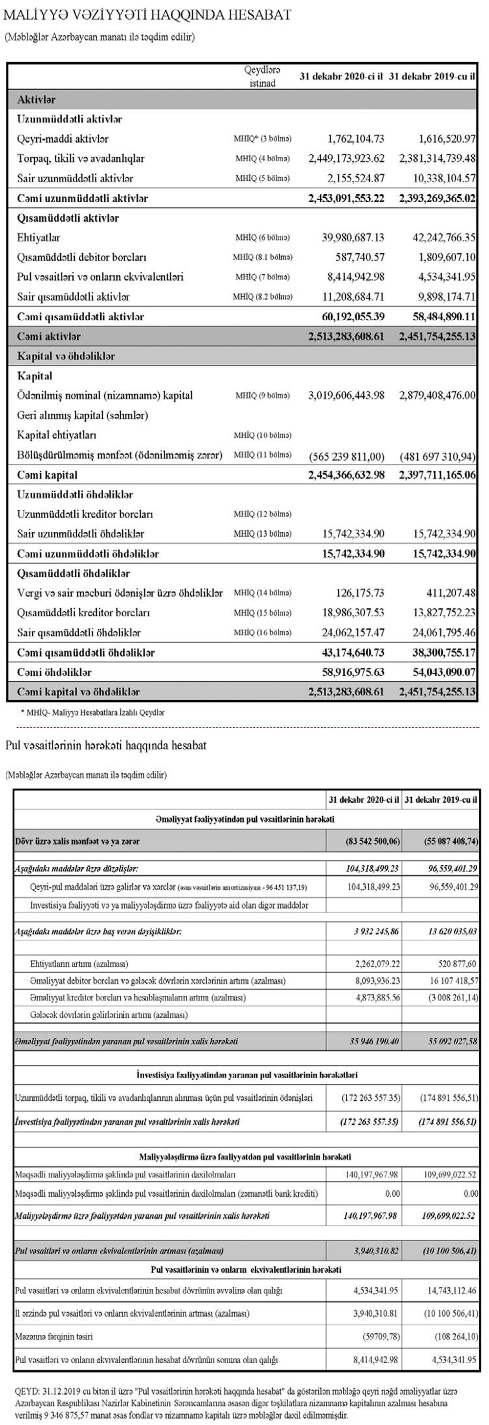 Hesabat dövründə qurumun öhdəlikləri 9% artaraq 58 milyon 917 min manata, balans kapitalı isə 2,4% artaraq 2 milyard 454 milyon 367 min manata, o cümlədən nizamnamə kapitalı 4,9% artaraq 3 milyard 19 milyon 606 min manata çatıb.