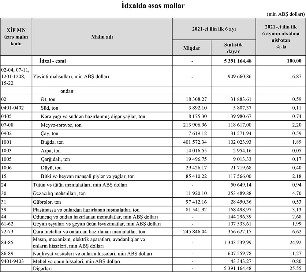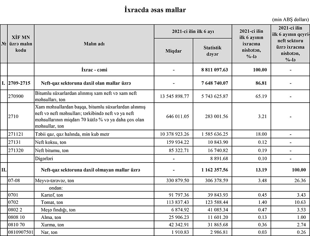 Azərbaycanın yarımildə ən çox ixrac və idxal etdiyi mallar