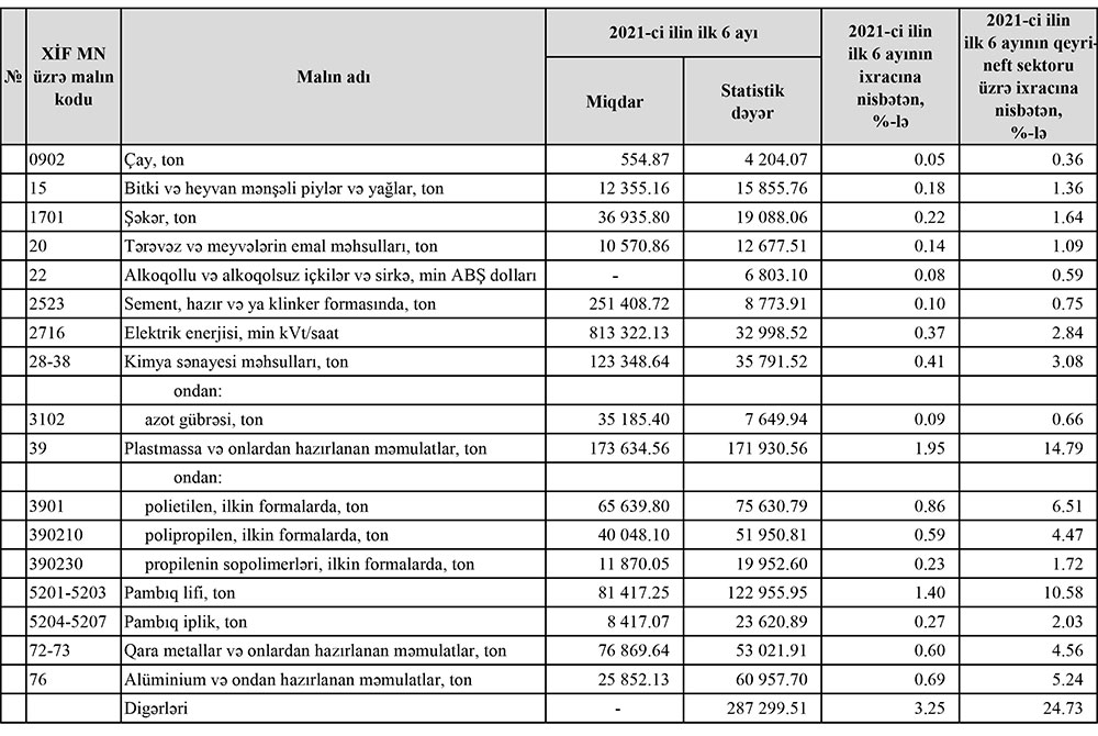 2021-ci ilin yanvar-iyun aylarında Azərbaycanın ən çox ixrac və idxal etdiyi mallar açıqlanıb.