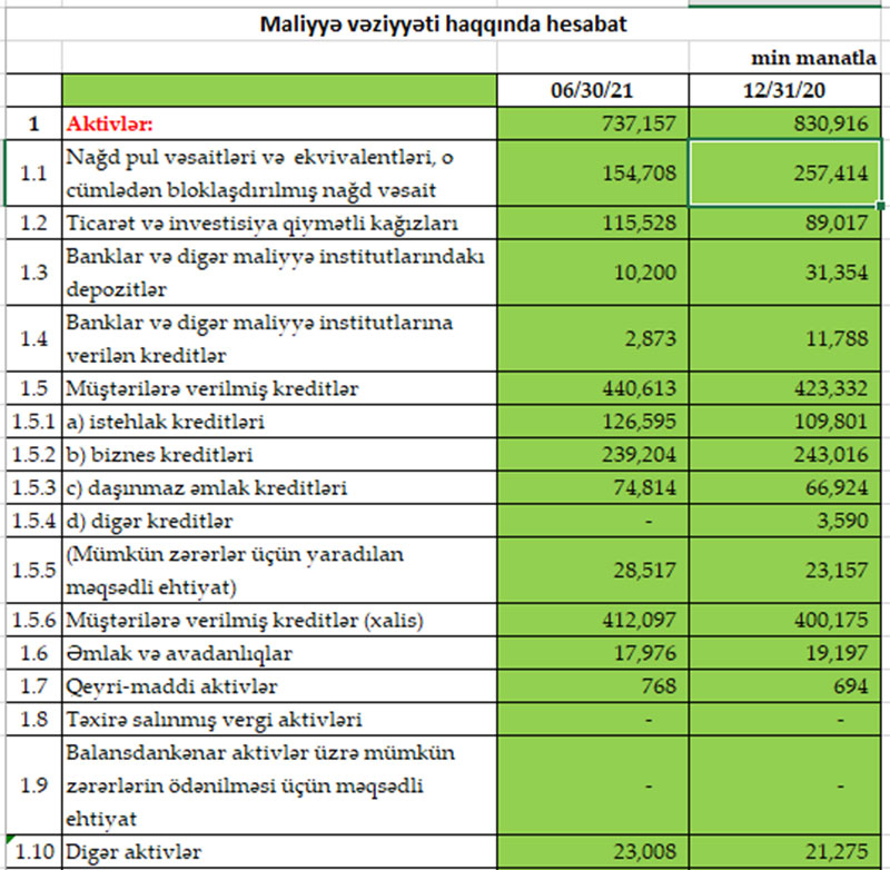 2020-ci ilin sonu ilə müqayisədə “Rabitəbank” ASC-nin müştərilərə verdiyi cəmi kreditlər 17 milyon 281 min manat artaraq 30 İyun 2021-ci il tarixində 440 milyon 613 min manata çatıb.