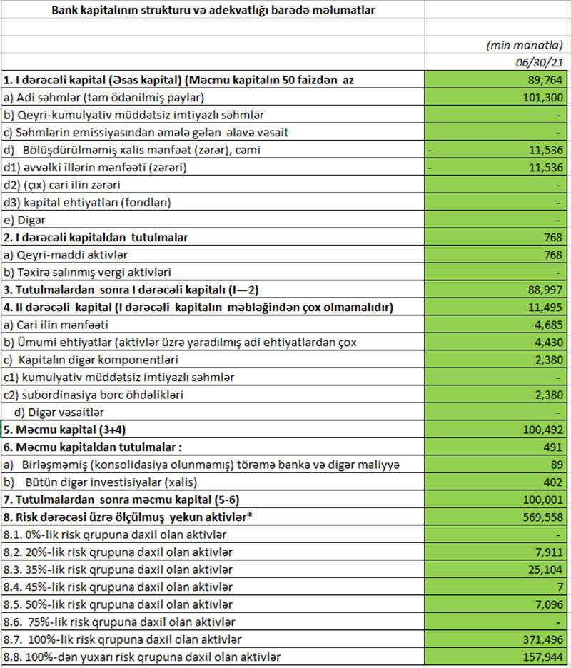 “Rabitəbank” 30 iyun 2021-ci il tarixində 100 milyon 1 min manat məcmu kapitala malik olub.