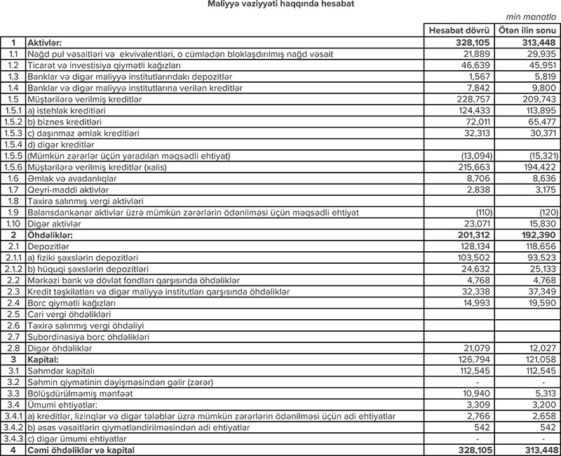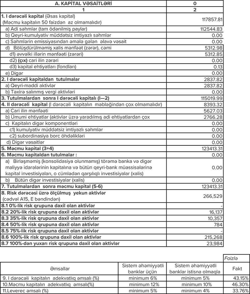 Bankın ümumi kapitalı isə keçən ilin müvafiq dövrü ilə müqayisədə 4.7% artaraq 126.8 milyon manat təşkil edib.