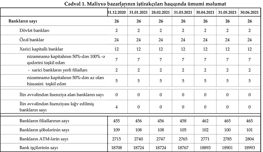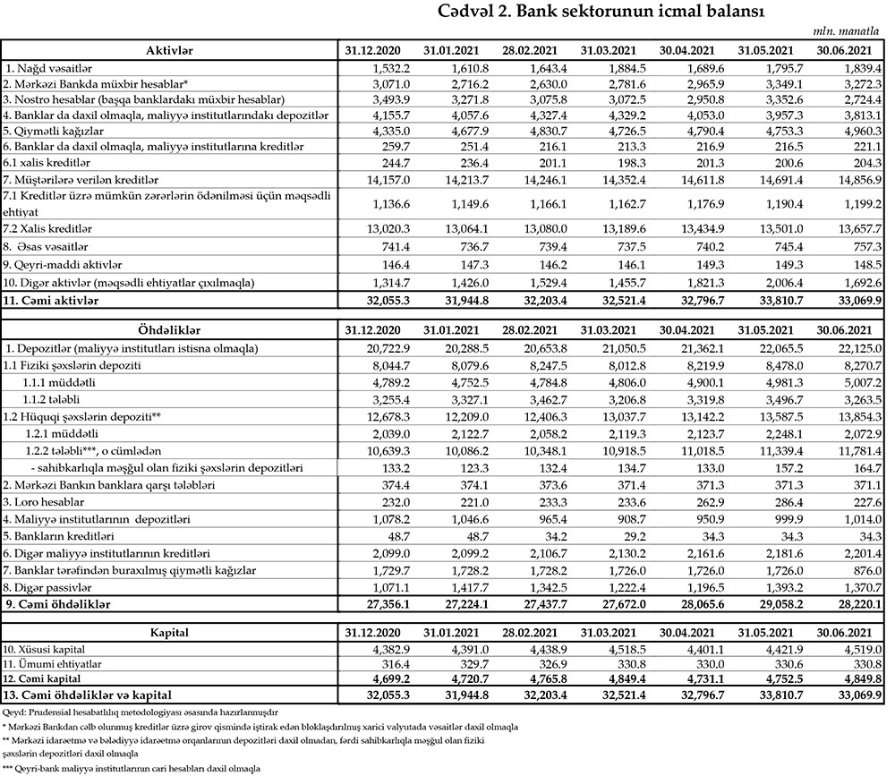30 iyun 2021-ci il tarixinə olan bank sektorunun əsas göstəriciləri açıqlanıb.