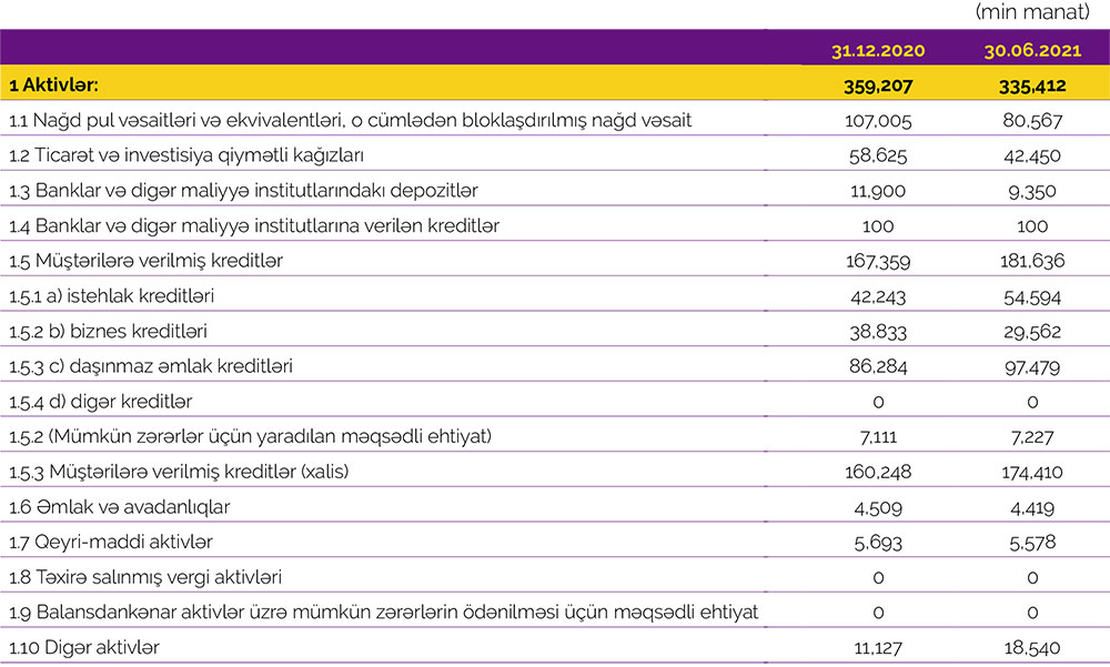MÜŞTƏRİLƏRƏ VERİLMİŞ KREDİTLƏR ARTIB