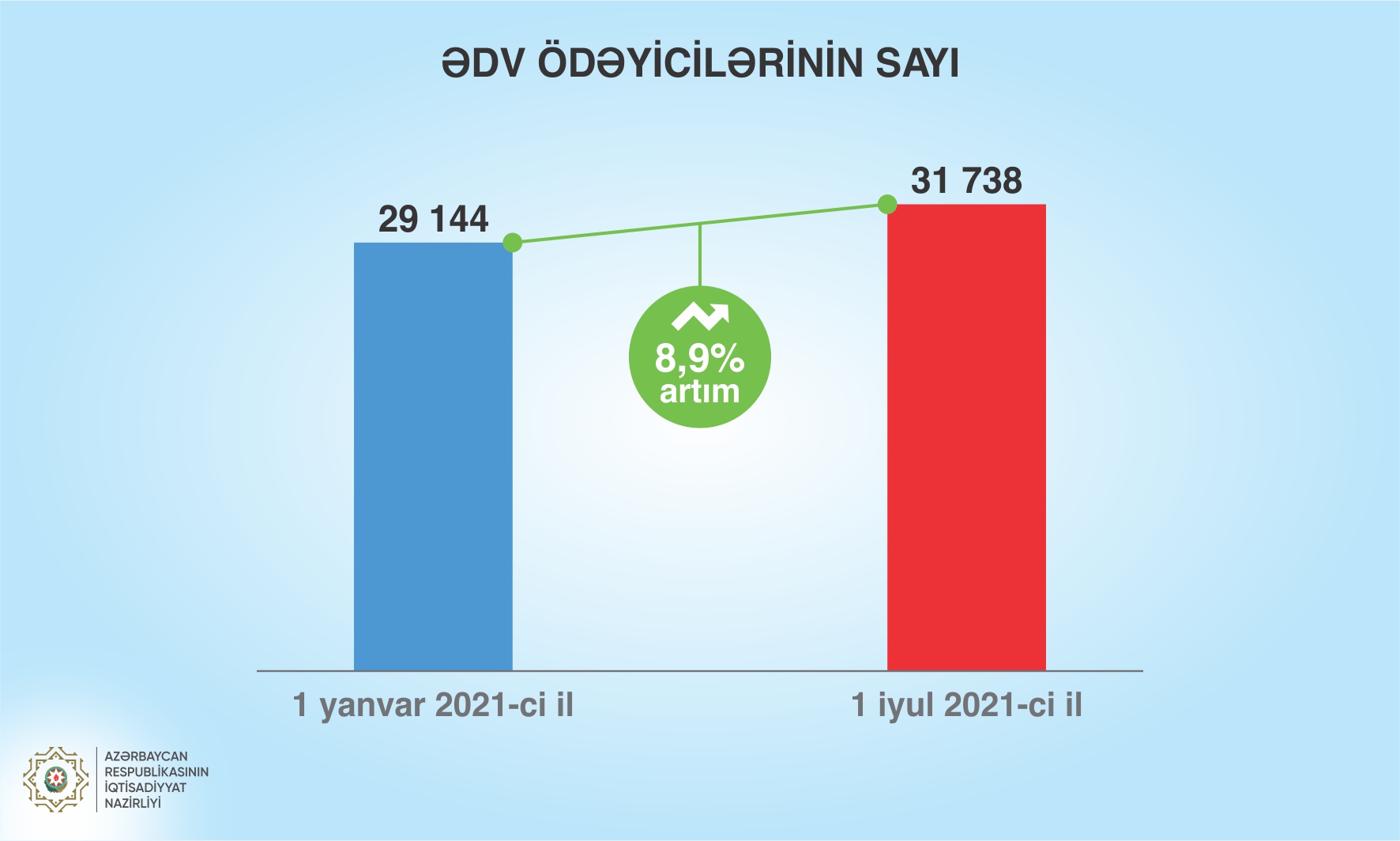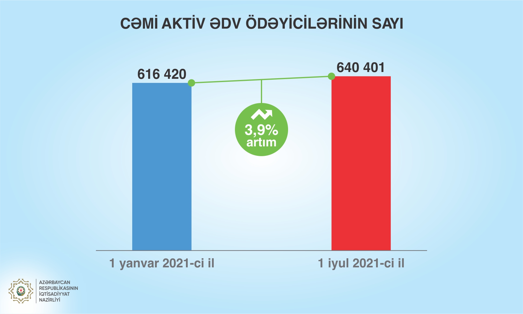 Nazir qeyd edib ki, 2021-ci ilin 6 ayında aktiv vergi ödəyicilərinin sayı ilin əvvəli ilə müqayisədə 3,9% artaraq 640 min 401, ƏDV ödəyicilərinin sayı 8,9% artaraq 31 min 738, qeydiyyatdan keçmiş obyektlərin sayı isə 5,8% artaraq 176 min 794 təşkil edib.
