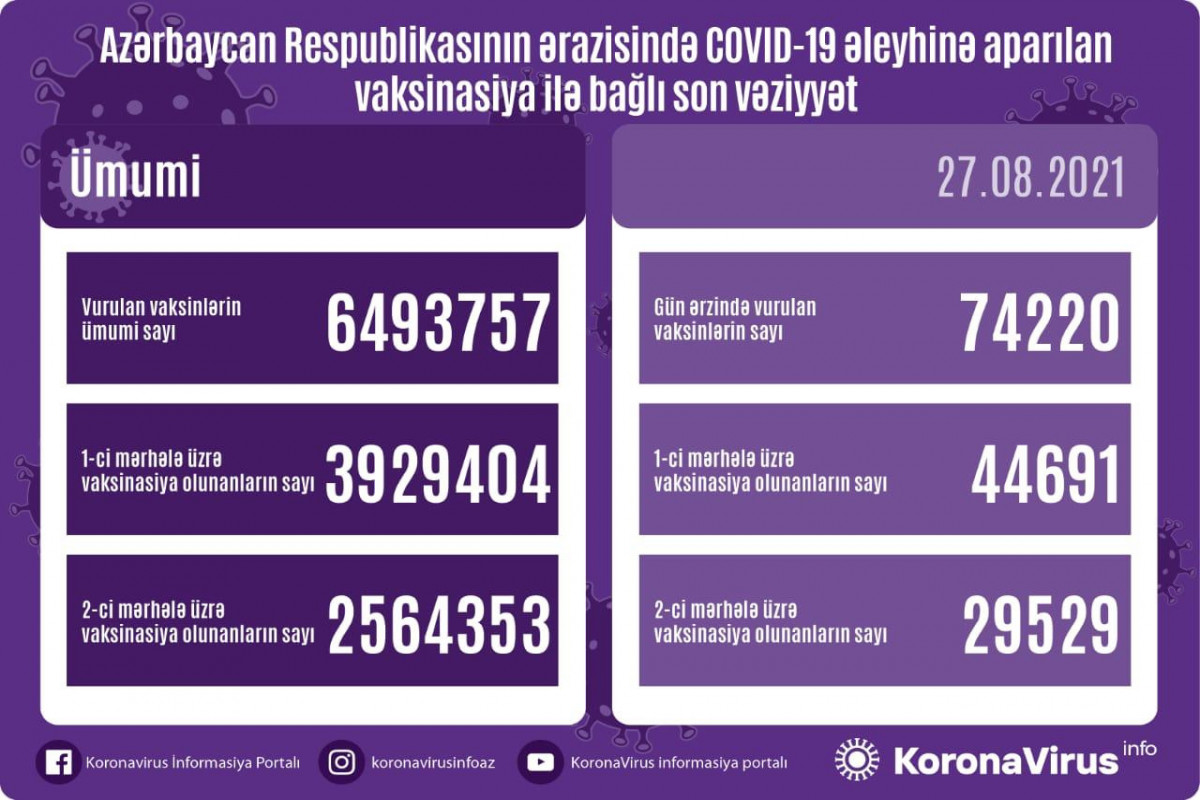26 Avqust 2021-ci il tarixində 3714 yoluxma faktı və 31 ölüm qeydə alındığı açıqlanmışdı.