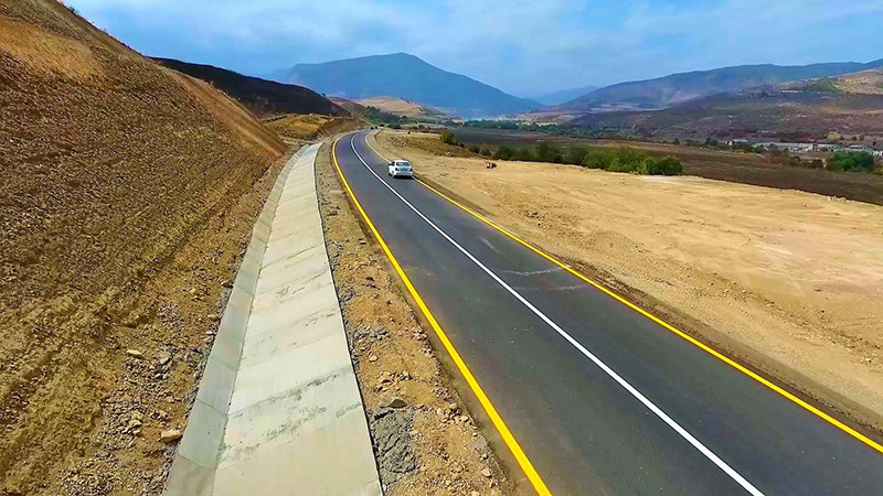 Dövlət başçısının tapşırığına əsasən, ötən il noyabr ayının 16-da təməli qoyulmuş və uzunluğu 101 kilometr təşkil edən “Zəfər yolu” Qarabağın inkişaf planı nəzərə alınmaqla 2-ci texniki dərəcəyə uyğun inşa edilir.
