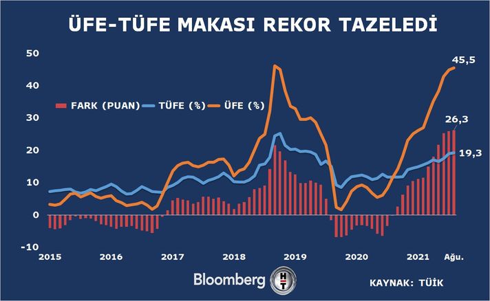 Marja xəbər verir ki, avqust ayında inflyasiya Mərkəzi Bankın 19% olan pul siyasət faizini keçib. Avqustda Türkiyədə istehlakçı qiymətləri indeksi (inflyasiya göstəricisi) ötən ilin eyni dövrü ilə müqayisədə 19,25% artıb.