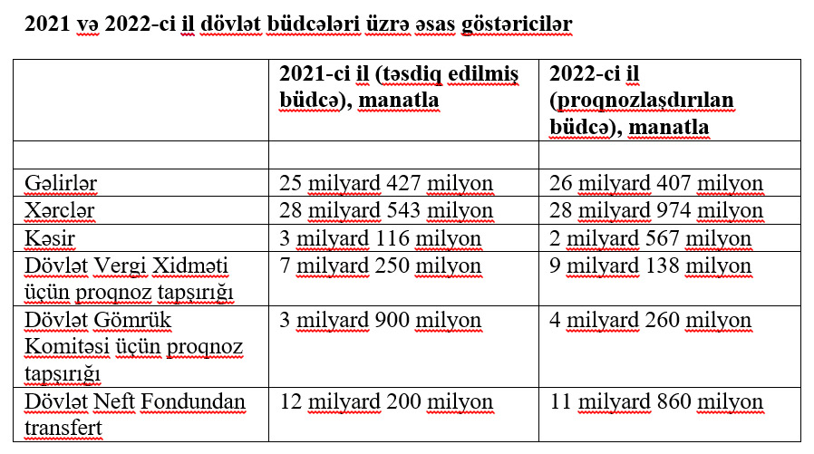 2022-ci ilin dövlət büdcəsində Dövlət Vergi Xidməti üçün proqnoz tapşırığı 1 milyard 888 milyon manat artırılır.