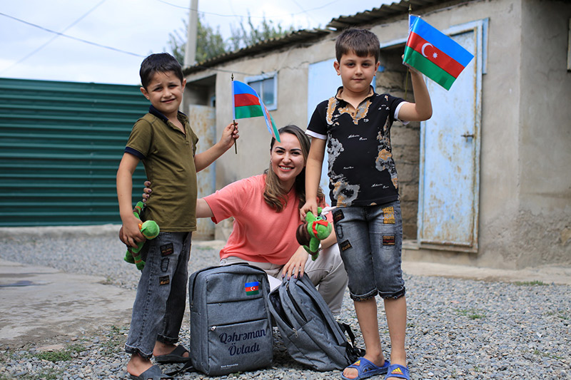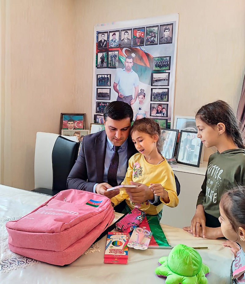 Həmçinin, uşaqlara yeni tədris ilinin başlanması ilə əlaqədar içərisində müxtəlif dərs ləvazimatları olan və üzərində “Qəhrəman övladı” yazılmış məktəbli çantaları hədiyyə edilib.