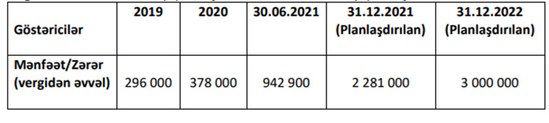 “TBC Kredit”in ötən dövrlər üzrə maliyyə nəticələri və planlaşdırılan göstəricilər: