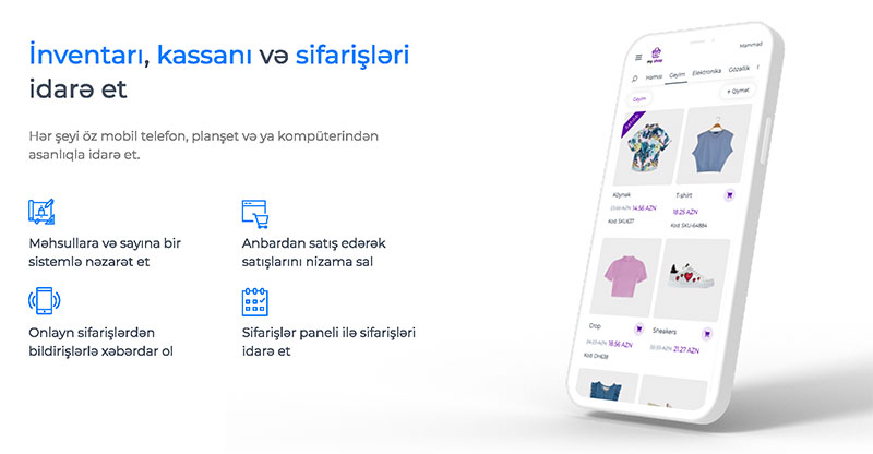 - Bizim gətirdiyimiz yeniliklərdən biri bir neçə toxunuşla internet mağaza aça bilməkdir. Biznes bizdə qeydiyyatdan keçdikdən sonra həm oflaynda xidmətlər alacaq, həm də avtomatik internet mağazaya sahib olacaq. Bir daha vurğulayım, bunun üçün heç bir xərc çəkilməyəcək.