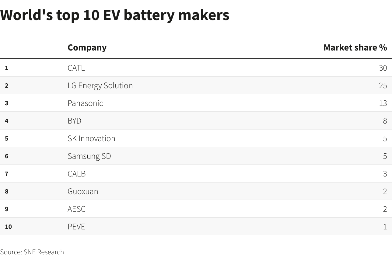 LG Energy Solution (Cənubi Koreya) - 25%, illik gücü bu ilin sonuna 155 Gigavatt-a 2025-ci ilə qədər 430 Gigavtta çatdırmağı planlaşdırır;