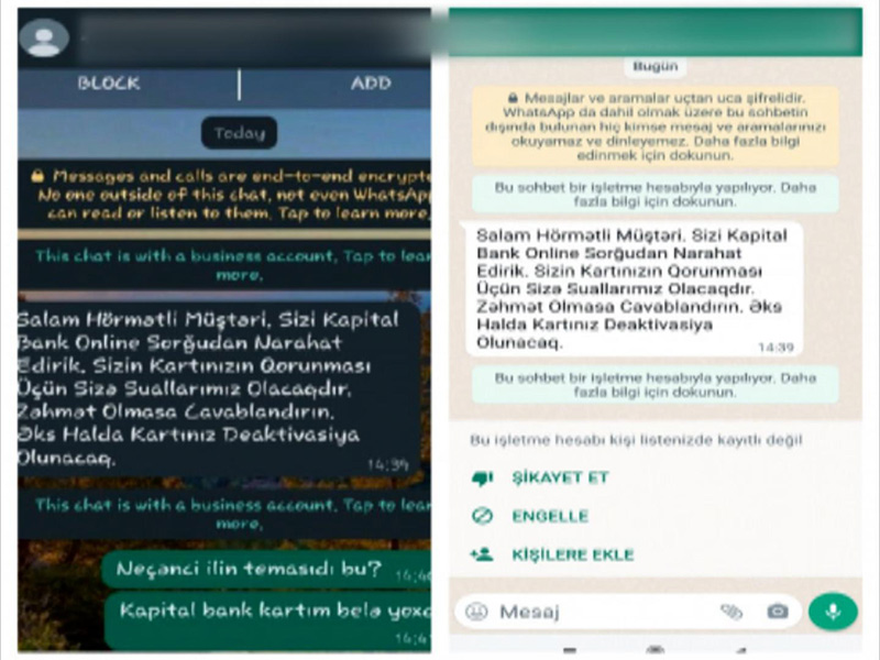 Son günlər Daxili İşlər Nazirliyinə vətəndaşlardan bank kartlarından müxtəlif məbləğlərdə pul vəsaitlərinin oğurlanması, həmçinin “Whatsapp” ani mesajlaşma proqramı ilə onlara bankların adından müraciətlərin və zənglərin edildiyi barədə şikayətlər daxil olub.