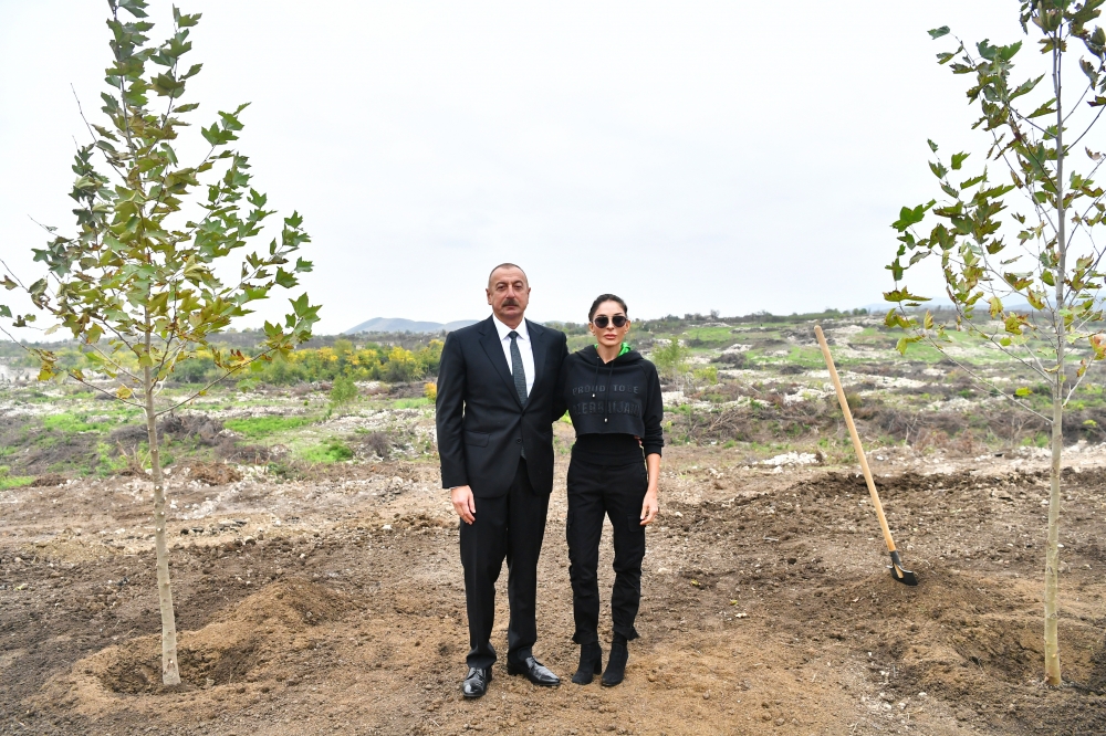 Sonra Prezident İlham Əliyev və birinci xanım Mehriban Əliyeva Füzuli Mərkəzi Şəhər parkında yaradılacaq şəraitlə tanış olublar, burada ağac əkiblər. Dövlətimizin başçısı ilk yaşayış binalarının təməlini qoyub.