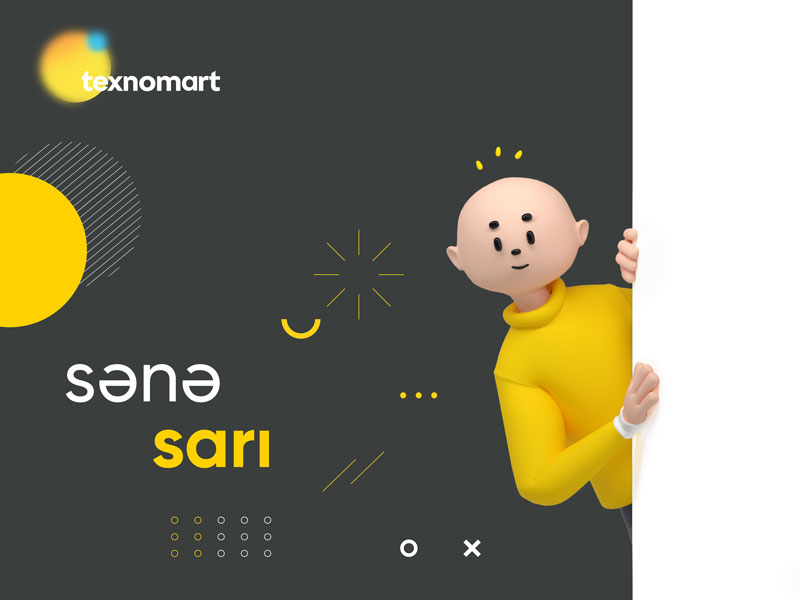 “Texnomart”ın istiqaməti hər zaman birdir – yüksək xidmətə, keyfiyyətli texnologiyaya, yeni fürsətlərə və ən önəmlisi hər bir insana SARI. Texnomart – sənə sarı!