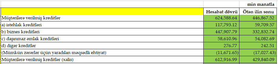 Digər kreditlər isə 34 min manat artaraq 277 min manat təşkil edib.