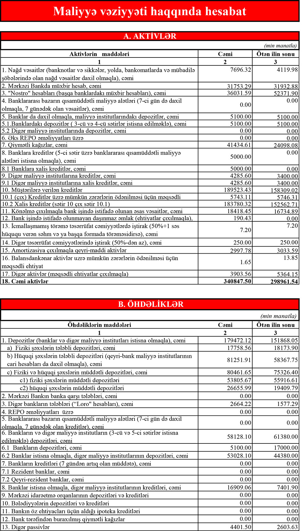 DEPOZİTLƏR ARTIB