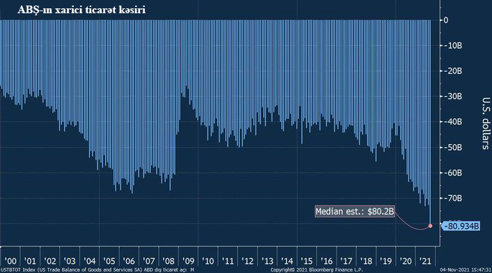 Bazarlar xarici ticarət kəsirindəki rekord artımı qlobal iqtisadi bərpadan qaynaqlandığı şəkilində qəbul edib.