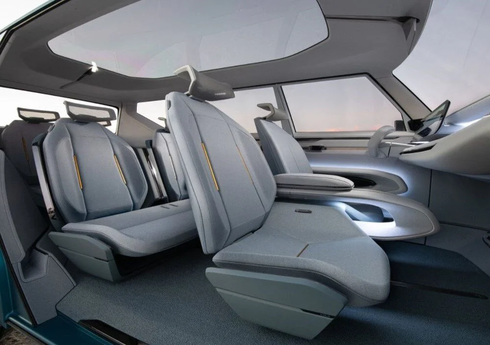 Avtomobilin döşəməsi üçün dənizdən toplanan balıq torları və plastiklər kimi təkrar emal edilmiş materiallardan istifadə edilmişdir.