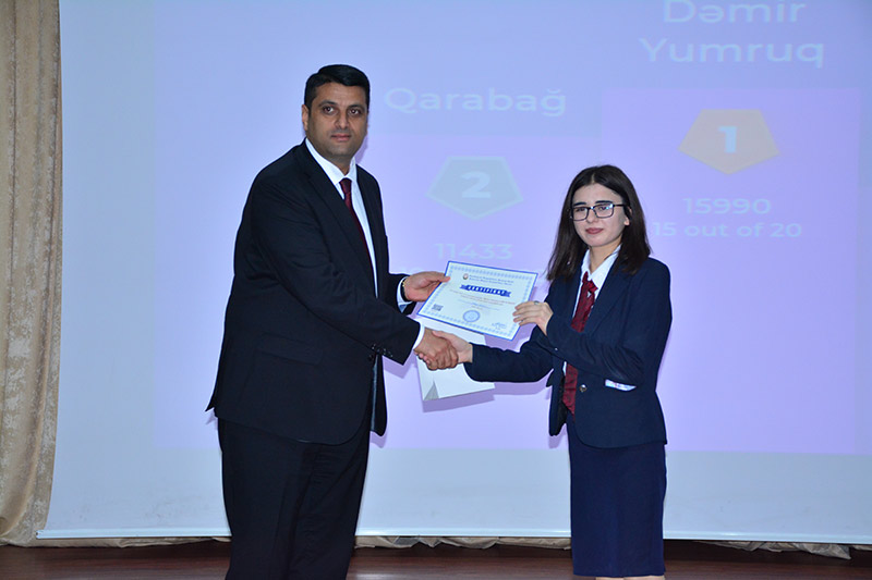 Sonda iştirakçılar arasında oyun əsaslı tədris platforması olan “Kahoot” sistemi vasitəsilə yarışma keçirilmiş və qalib olan ilk üç komandaya “Zəfər Yolu” kitabı, oxunması zəruri olan kitablar, sertifikatlar, Naxçıvanbank ASC, Beynəlxalq Bank ASC-nin və Azər-Türk Bank ASC-nin yerli filialları tərəfindən dəyərli hədiyyələr təqdim edilmişdir.