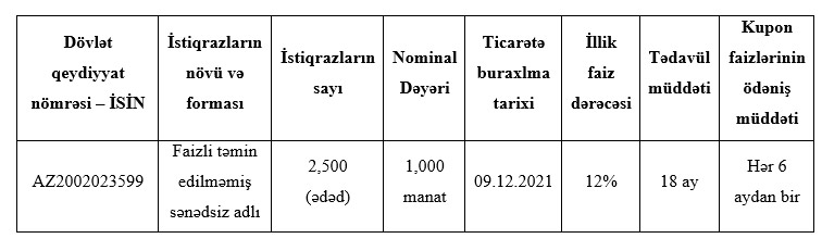İstiqrazların faiz dərəcəsi 12%, kupon faizlərinin ödəniş müddəti hər altı aydan birdir.