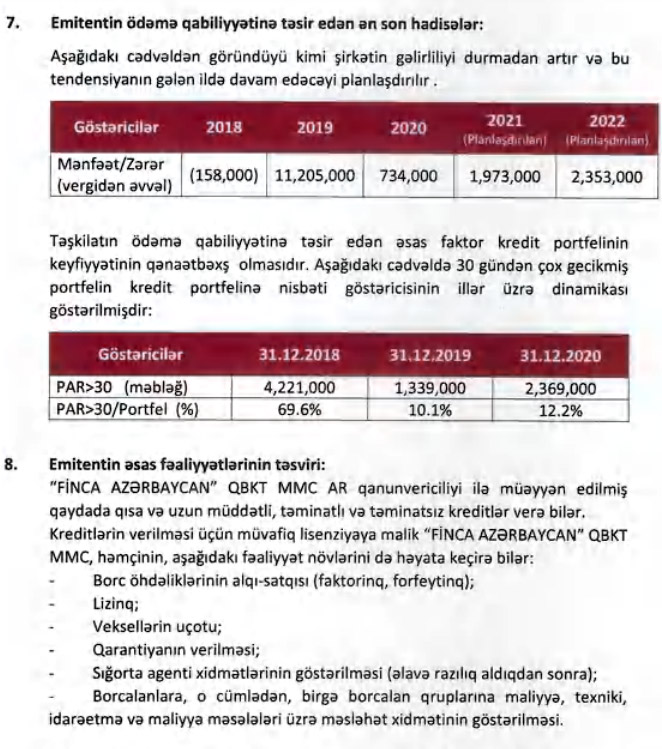 Marja.az xəbər verir ki, bu, təşkilatın istiqraz buraxılışı ilə əlaqədar Emissiya Prospektində bildirilir.