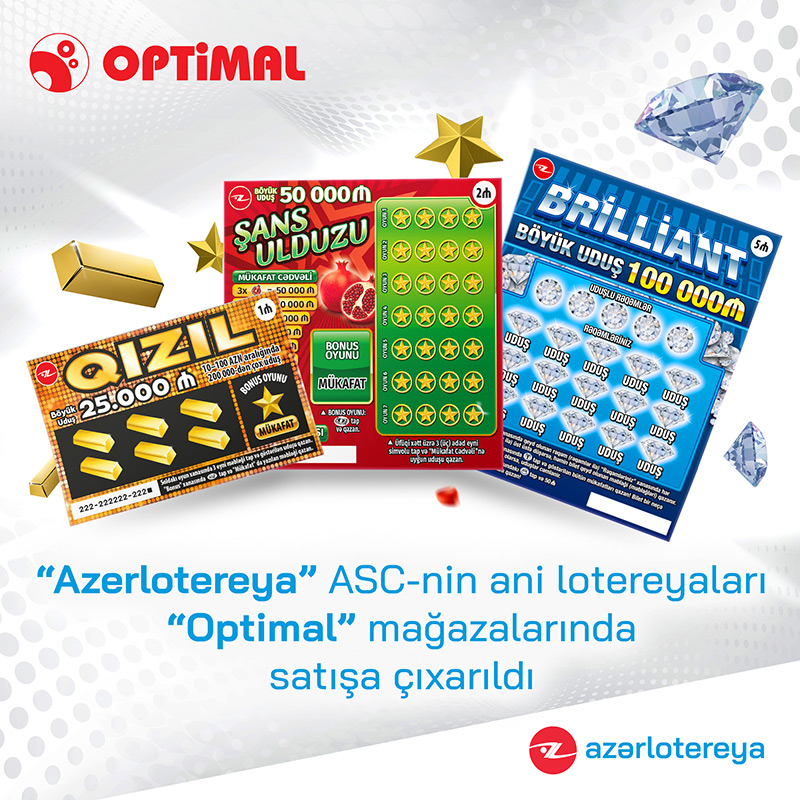 Lotereya həvəskarları 17 dekabr 2021-ci il tarixindən etibarən “Brilliant”, “Şans ulduzu” və “Qızıl” ani lotereyalarını “Optimal” mağazalarında əldə edə bilirlər. Satışlar “Optimal Elektronika”-nın 80 mağazasında həyata keçirilir.