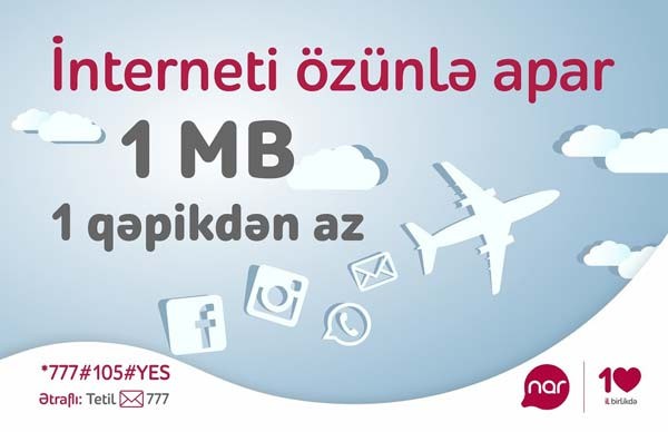 Bundan sonra səfərdə olarkən, Wi-Fi axtarmağa ehtiyac qalmayacaq. Səfərə çıxdıqda, “Nar”-ın “Tətil”paketlərindən birini sifariş edərək səyahət etmək olduqca sərfəlidir.