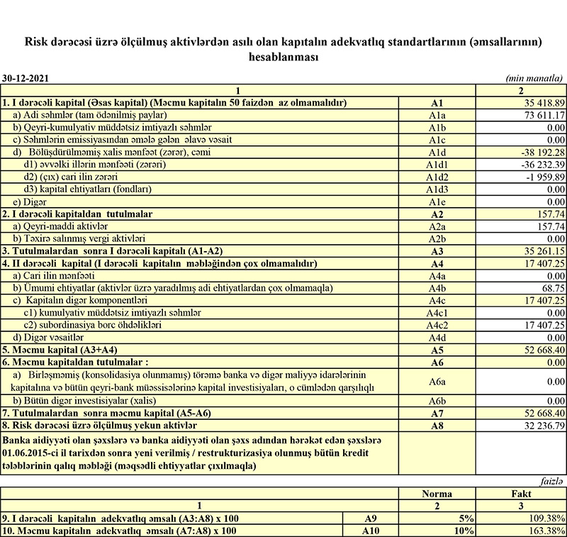 Azərbaycanda fəaliyyət göstərən bank 2 milyon manata yaxın zərər açıqladı