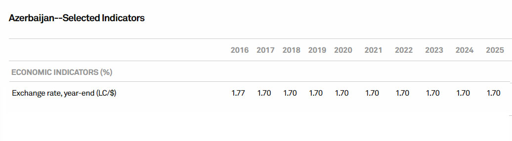 "Güman edirik ki, Azərbaycan hakimiyyətin xarici valyuta bazarına müntəzəm müdaxilələri ilə dəstəklənən manatın ABŞ dollarına nisbətdə de-fakto məzənnəsini 1,7 manatda saxlayacaq. Buna baxmayaraq, bizim fikrimizcə, karbohidrogen qiymətləri kəskin şəkildə aşağı düşərsə və uzun müddət aşağı qalarsa, səlahiyyətlilər məzənnənin tənzimlənməsini (devalvasiya) nəzərdən keçirə bilər. Bu, 2015-ci ildə Mərkəzi Bankın yaşadığına bənzər xarici valyuta buferlərinin əhəmiyyətli itkisinin qarşısını almağa kömək edəcək", - S&P-nin analitikləri bildirib.