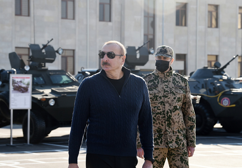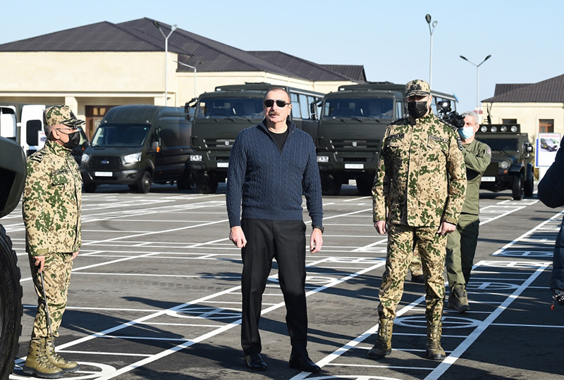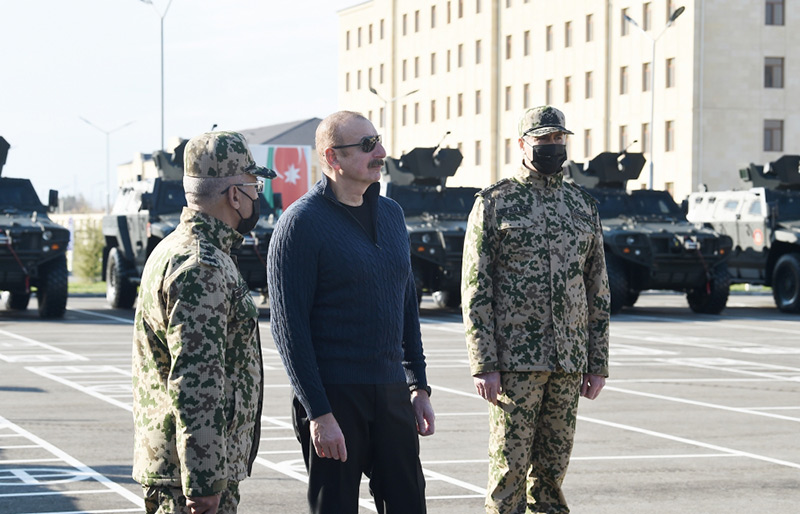 Prezident, Ali Baş Komandan hərbi şəhərcikdə qərargah, əsgər yataqxanaları, tibb məntəqəsi və yeməkxana ilə tanış olub.