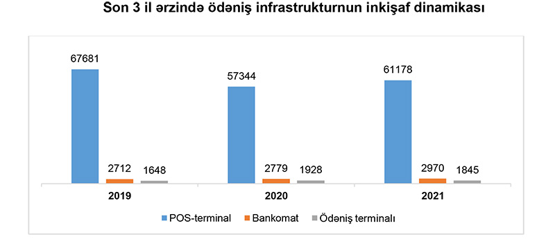 2020-ci il ilə müqayisədə ödəniş kartlarının sayı 20%, o cümlədən təmassız kartların sayı 2 dəfə artmışdır.