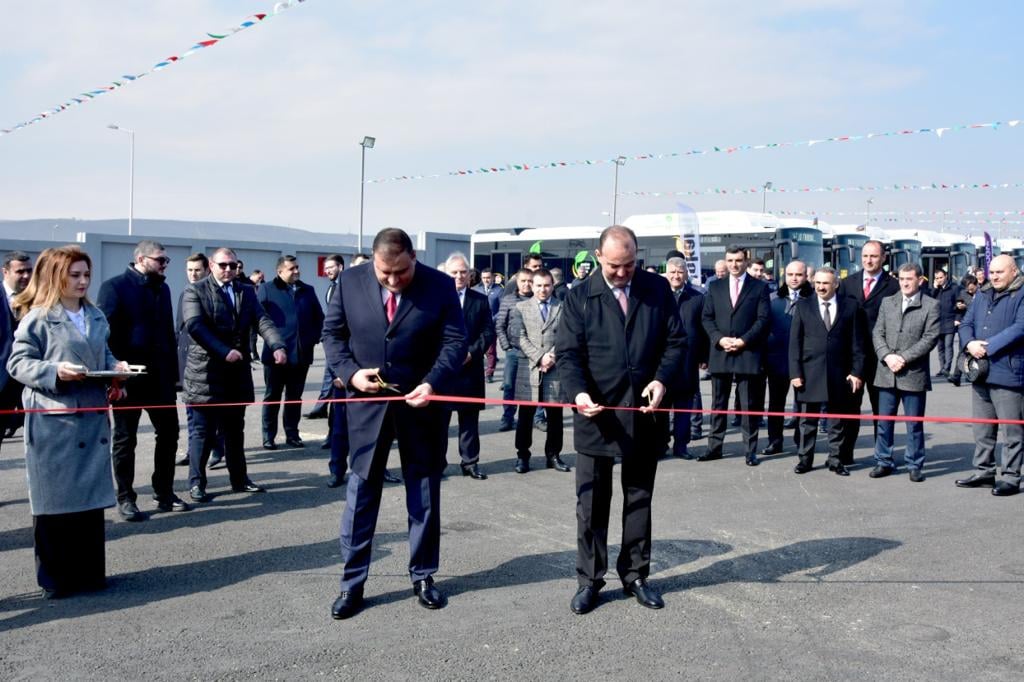 Təqdimat mərasiminin yekununda istehsalat bazası və yeni alınmış avtobuslara baxış keçirilib