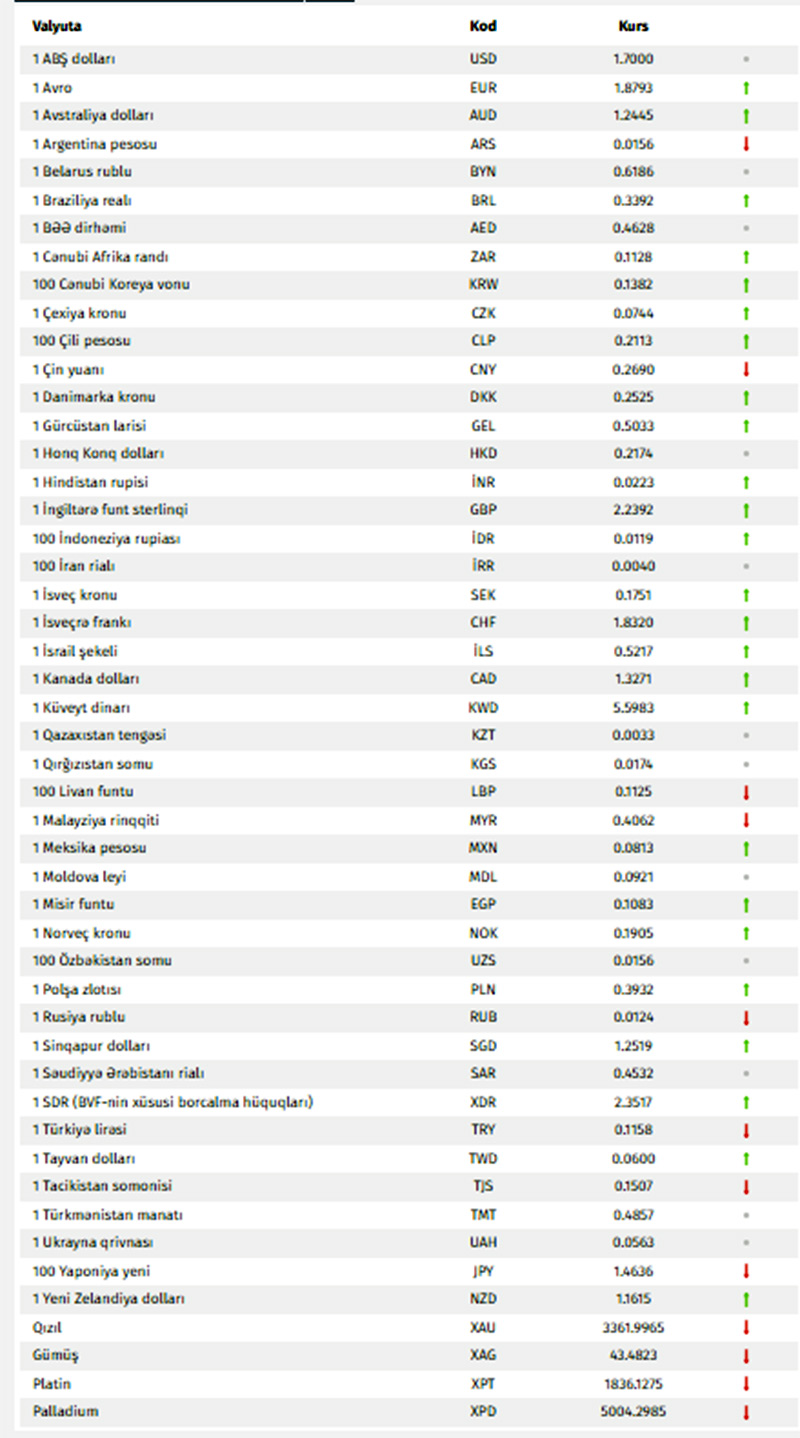 Rəsmi məzənnələr açıqlandı