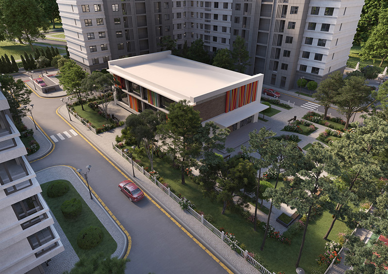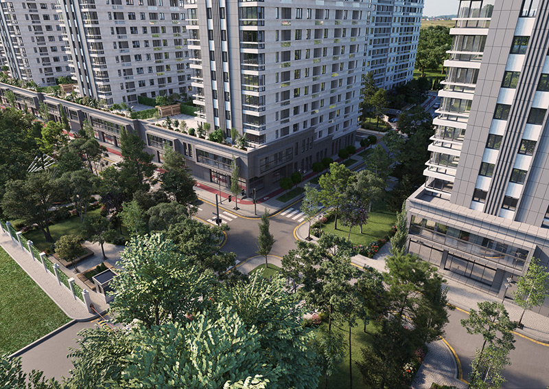 Ümumilikdə 4 hektar ərazini əhatə edən yaşayış kompleksinin tikintialtı sahəsi cəmi 1 hektardır, bu səbəbdən yaşıllıqlar, geniş həyət və içtimai iaşə obyektləri üçün böyük sərbəst bir sahə qalır.