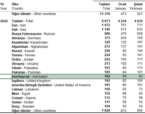 2022-ci ilin ynavar-fevral aylarında azərbaycanlılar Türkiyədə 182 mənzil alıblar.