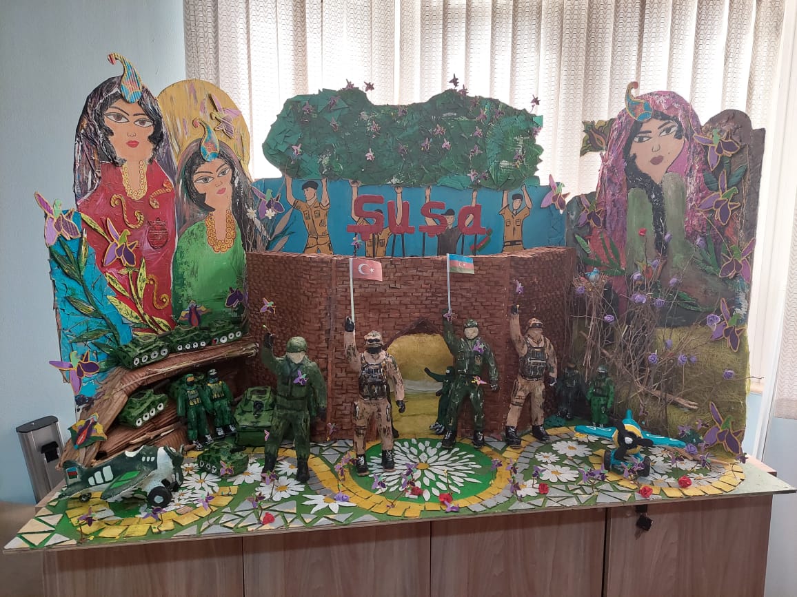 Daha sonra sığınacağın əməkdaşları uşaqların əmək dərsində hazırladığı və “Şuşa İli”-nə həsr etdiyi əl işlərini sərgilədilər. Qeyd edək ki, sığınacaq həm də Reinteqrasiya Mərkəzi kimi fəaliyyət göstərir. Uşaqların asudə vaxtlarının təşkili zamanı aktiv şəkildə “art terapiya”, “əmək terapiya” və s. kimi müalicəvi prosedurlardan da istifadə olunur. Sığınacaqda usaqlara mənəvi və hüquqi dəstək də verilir. Mütəmadi olaraq psixoloq, psixoterapev, sosioloqlar, hüquqşünaslar sığınacağın sakinləri ilə görüşüb söhbətlər aparırlar.