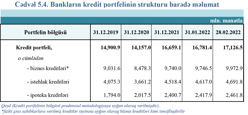28 fevral 2022-ci il tarixinə olan bank sektorunun əsas göstəriciləri açıqlanıb.